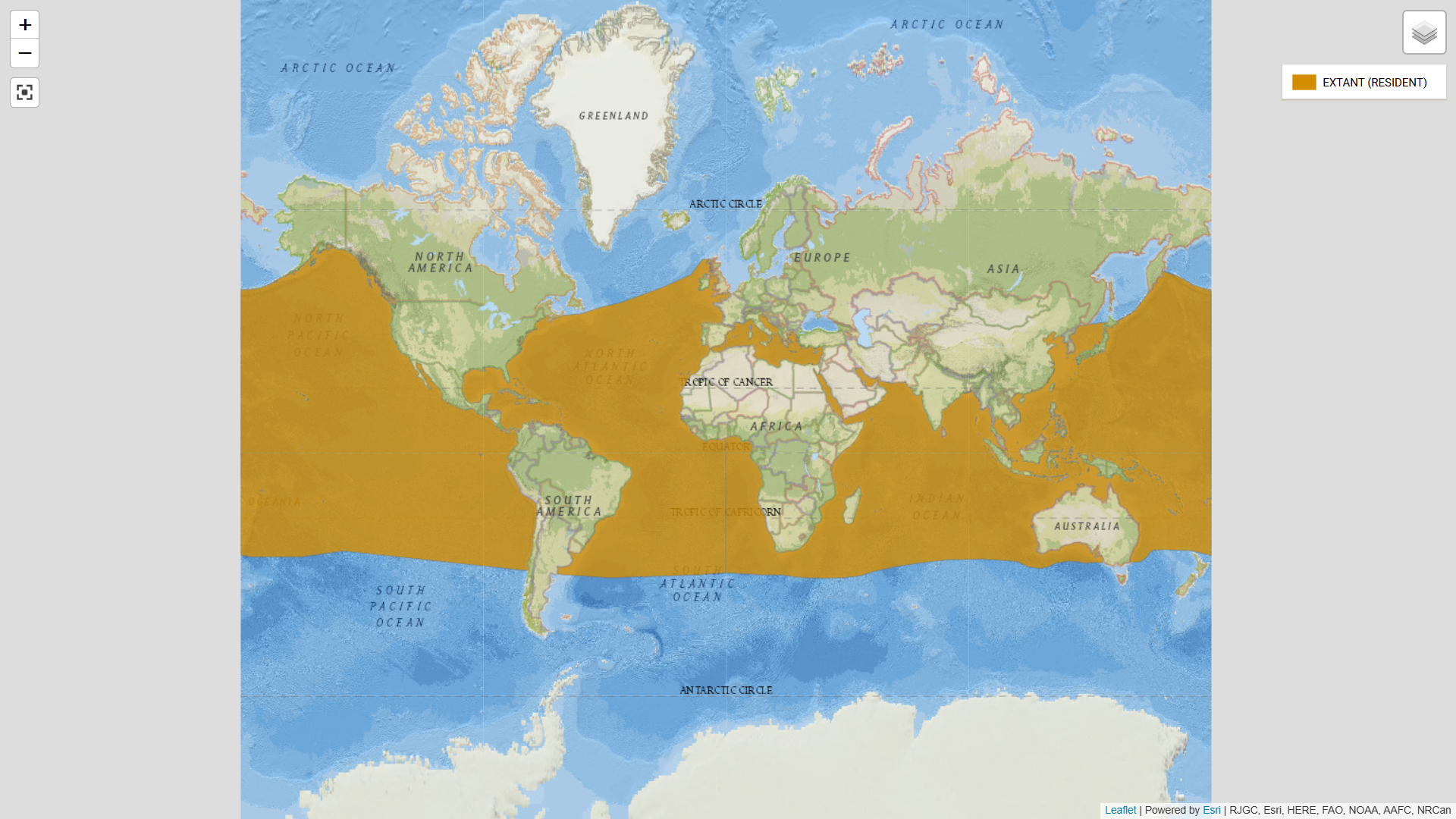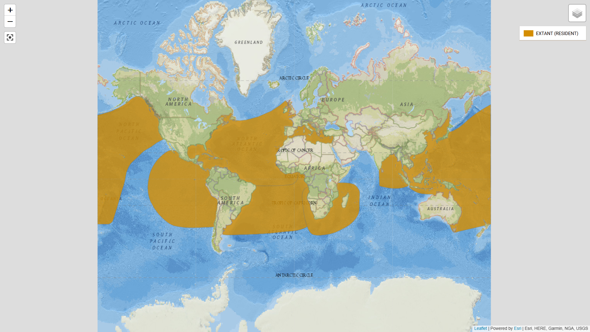 si tratta di una specie presente in tutto il mondo: presenta infatti il più ampio range di distribuzione, prediligendo le acque tropicali e temperate, ma arrivando anche alle alte latitudini , nelle acque fredde di Alaska, Islanda, Norvegia e Canada. In generale, gli esemplari più giovani sono limitati maggiormente alle acque calde tropicali, mentre gli adulti si nutrono in acque pelagiche e quasi esclusivamente in zone oceaniche, effettuando estese migrazioni stagionali tra le aree di foraggiamento e le aree di nidificazione che possono attraversare interi bacini oceanici.